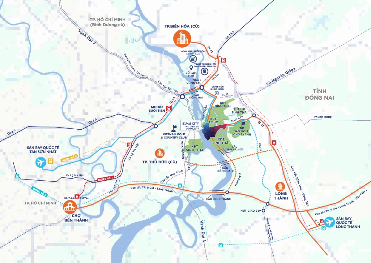 Giữa các trung tâm kinh tế , thủ phủ công nghiệp lớn nhất Việt Nam gồm Tp. Hồ Chí Minh, Tp.Thủ Đức, Tp. Biên Hòa, khu vực hành lang ven sông Đồng Nai được quy hoạch thành một trung tâm kinh tế mới, một khu vực phát triển mạnh mẽ tại khu Đông với cơ sở hạ tầng giao thông và công nghiệp hiện đại hàng đầu cả nước.